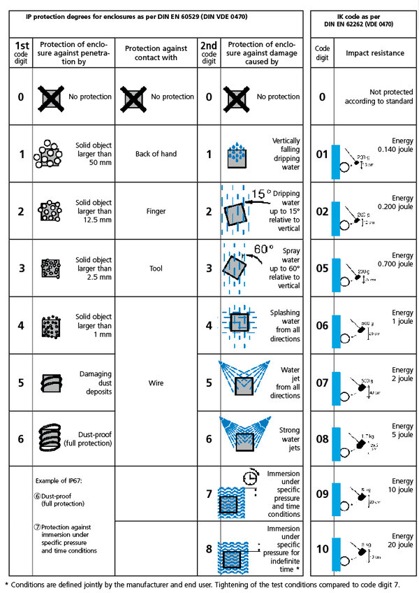 - The IP-Code consists of two digits: The first digit indicates the level of protection that the enclosure provides against access to hazardous parts (e.g. electrical conductors, moving parts) and the ingress of solid foreign objects. The second digit indicates the level of protection that the enclosure provides against harmful ingress of water.
